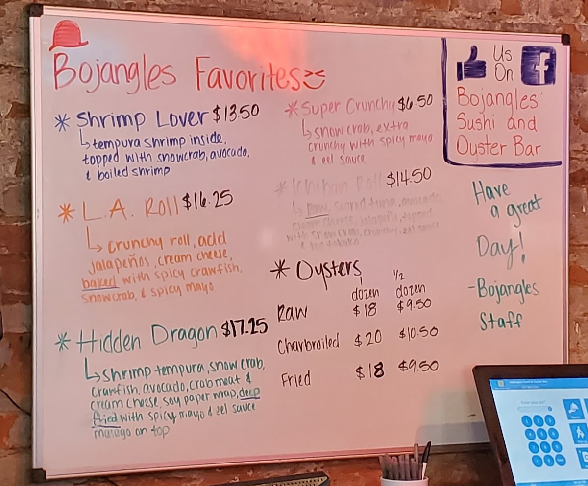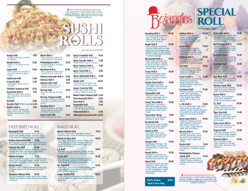 Bojangles' Sushi Rolls come in unique varieties, with options like the Amigo Roll and California Roll for those seeking familiar tastes, while the Special Rolls like the Amazing Roll and Crazy Roll promise something more adventurous and exciting. For younger guests, the Kids Menu features options like Kids Fried Rice and Kids Chicken Fried Rice, making it a great choice for the whole family.